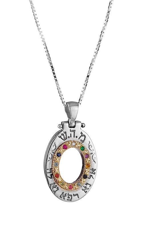 Gold 14k and silver 925 pendant with 12 Hoshen’s stone 1.5 mm each